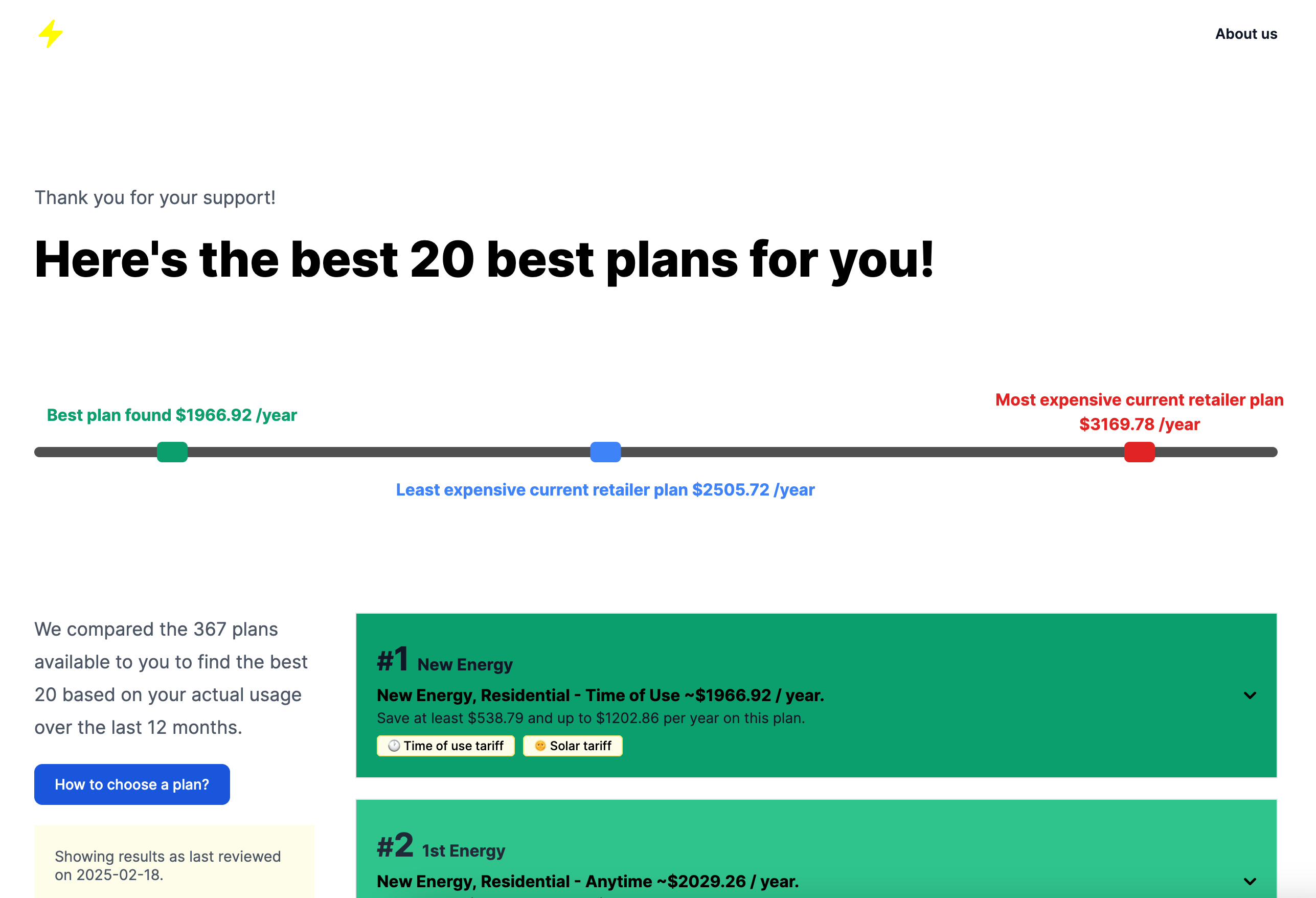 Free of the referral fee "complications" plaguing many comparison sites, we use your last years' worth of data to work out what you've had paid on other plans.